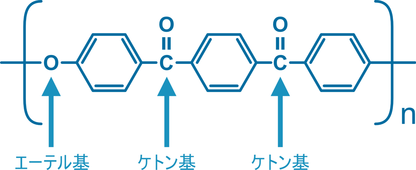 PEKKは、PEEK(ピーク)と似た構造を持ちながらも、分子内にケトン基が追加されたことでより高い耐熱性と化学的安定性を実現しています。